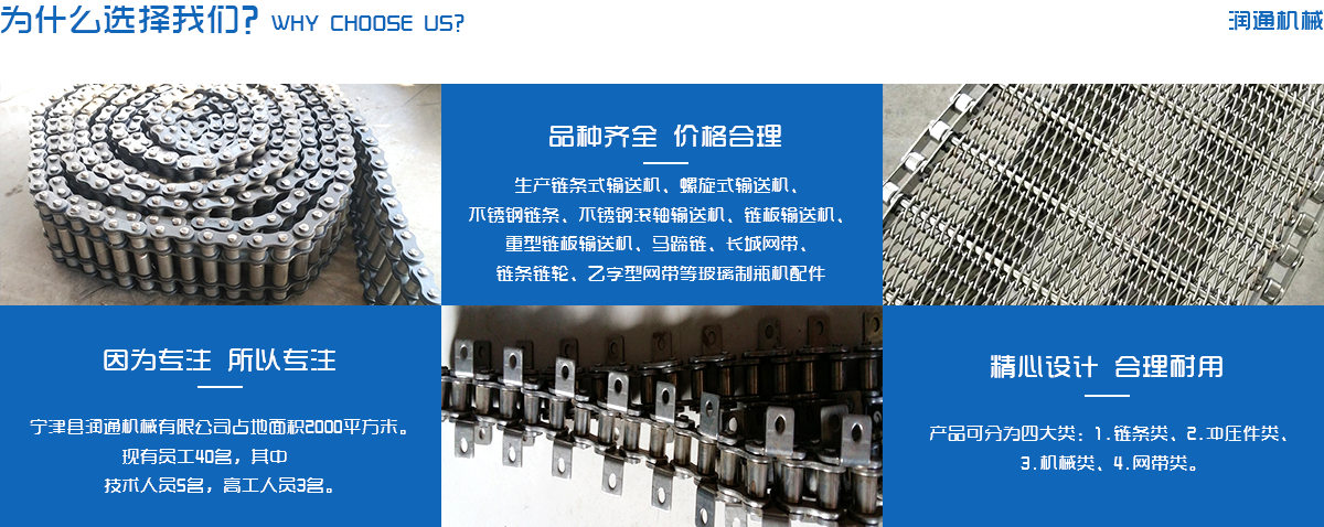 生產(chǎn)鏈條式輸送機(jī)、螺旋式輸送機(jī)、不銹鋼鏈條、不銹鋼滾軸輸送機(jī)、鏈板輸送機(jī)、重型鏈板輸送機(jī)、馬蹄鏈、長(zhǎng)城網(wǎng)帶、鏈條鏈輪、乙字型網(wǎng)帶等玻璃制瓶機(jī)配件,食品機(jī)械配件及各種網(wǎng)帶的專業(yè)廠家 ,多年來(lái)產(chǎn)品暢銷各地玻璃廠和食品廠,在玻璃制品等行業(yè)中享有較高的聲譽(yù)。公司集摸具開發(fā)、機(jī)械設(shè)計(jì)生產(chǎn),銷售于一體的生產(chǎn)型企業(yè)。生產(chǎn)的自動(dòng)化流水線金屬傳動(dòng)網(wǎng)帶、鏈條等產(chǎn)品廣泛用于玻璃機(jī)械、食品機(jī)械、化纖機(jī)械、醫(yī)藥、電子、烘干機(jī)械、輪胎機(jī)械等行業(yè)。產(chǎn)品多銷往各個(gè)城市的機(jī)械廠、食品廠和一些涉及流水線或自動(dòng)化設(shè)備的公司。